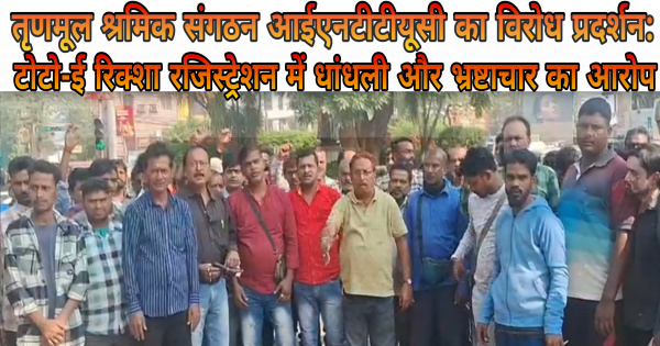 तृणमूल श्रमिक संगठन आईएनटीटीयूसी का विरोध प्रदर्शन: टोटो-ई रिक्शा रजिस्ट्रेशन में धांधली और भ्रष्टाचार का आरोप