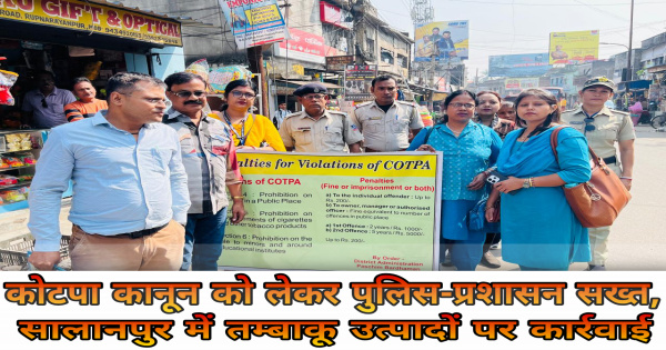 कोटपा कानून को लेकर पुलिस-प्रशासन सख्त, सालानपुर में जनबहुल एवं शैक्षणिक संस्थानों के पास तम्बाकू उत्पादों पर कार्रवाई