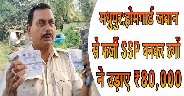 मधुपुर (झारखंड)। देवघर जिला के मधुपुर में साइबर ठगों ने एक होमगार्ड जवान को फर्जी एसएसपी (SSP) बनकर अपने जाल में फंसा लिया और उनसे ₹80,000 रुपये की ठगी कर ली। ठगों ने जवान को उनके बेटे को जेल भेजने की धमकी देकर यह धोखाधड़ी की।