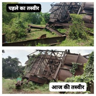 *कालीमेला में रोपवे बालू बंकर टावर का खुलेआम लोहा चोरी होना शुरू, सैकड़ो टन लोहा गायब*
