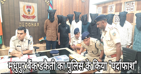 मधुपुर बैंक डकैती का पर्दाफाश: बिहार के वैशाली से 11 अपराधी दबोचे गए; 5.50 लाख, पिस्टल और स्कोडा कार बरामद